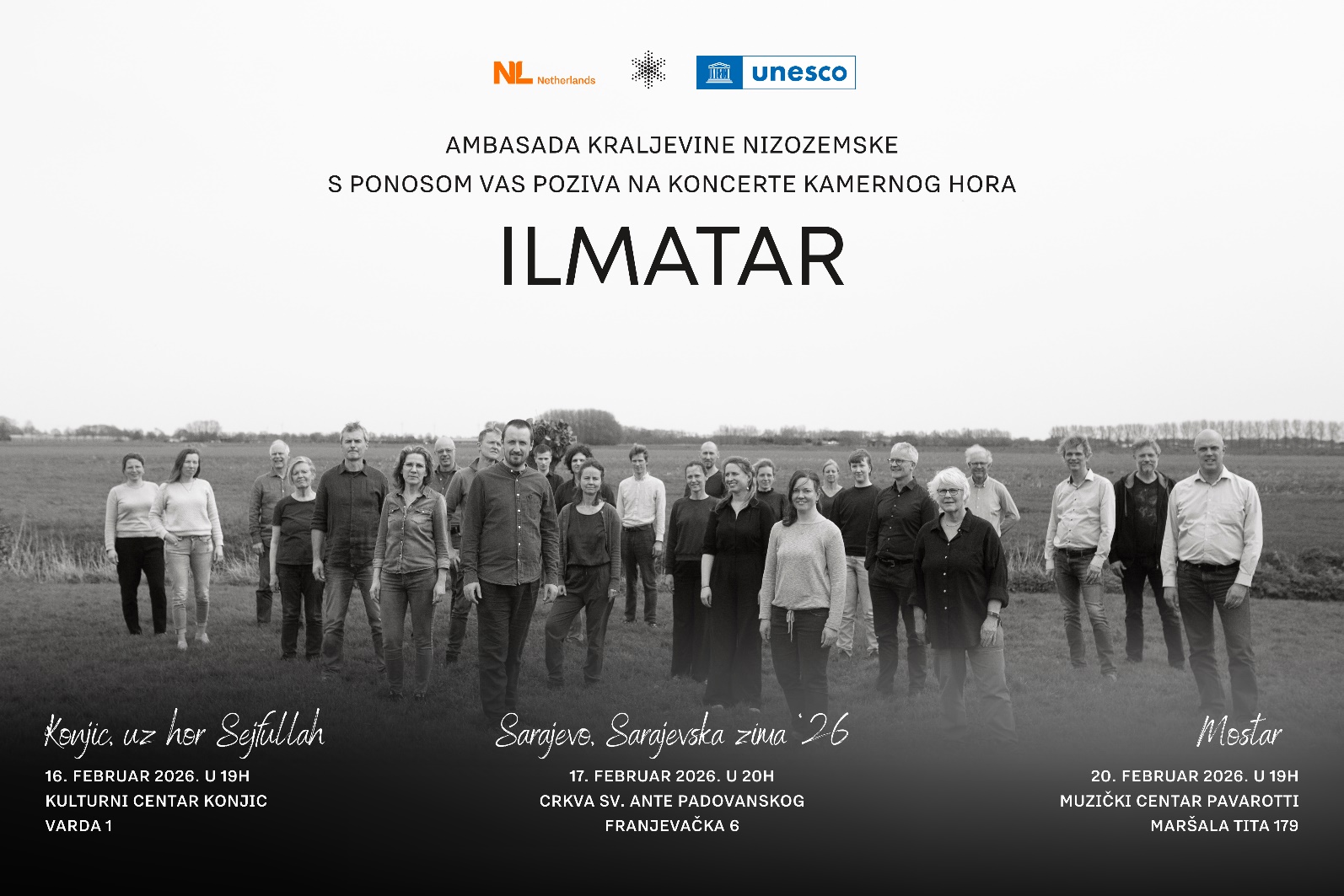 Koncert nizozemskog kamernog hora ” Ilmatar “17. februara 2026. godine u 20:00 Crkva sv. Ante na Bistriku